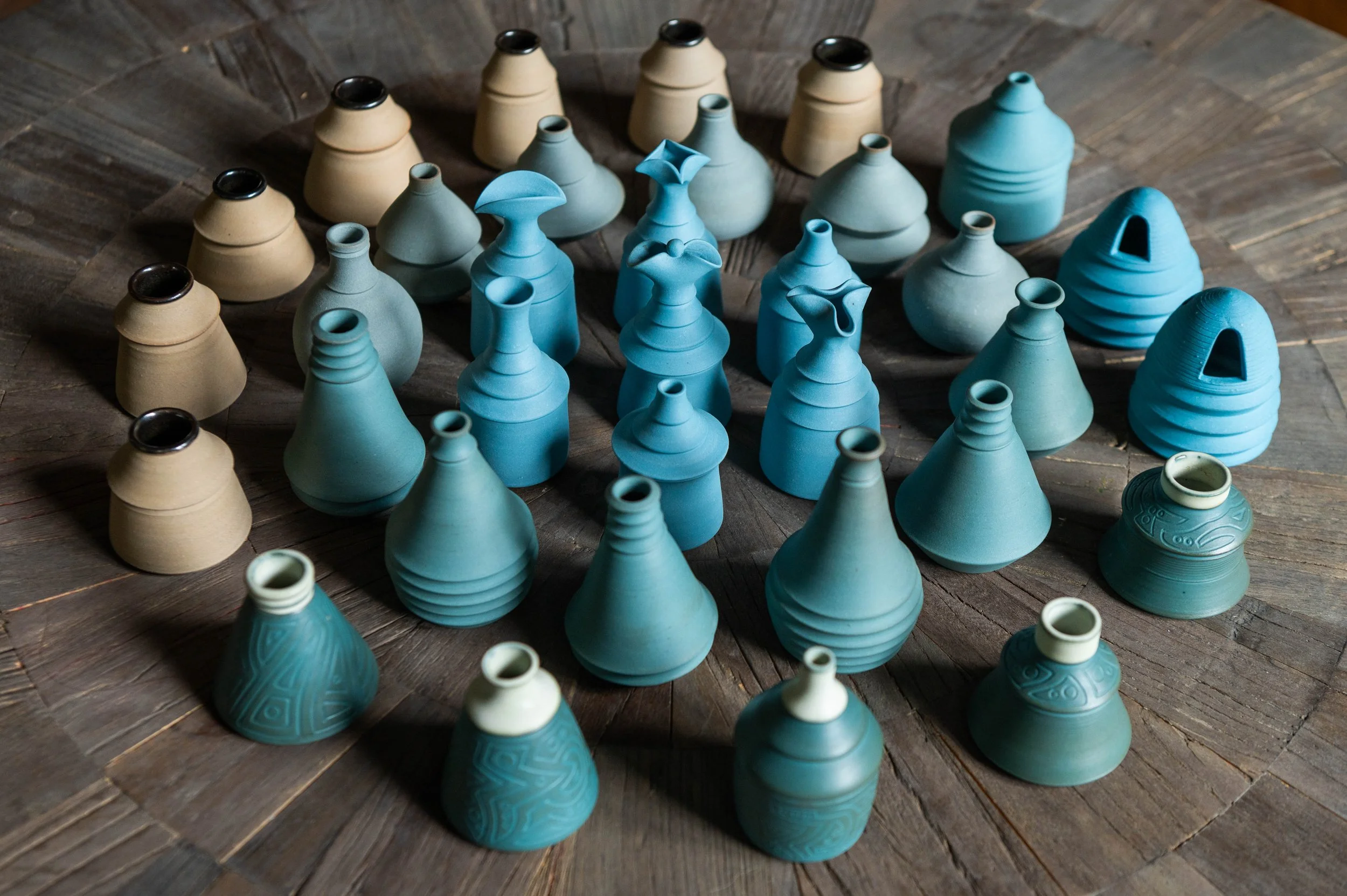 My earthy color pallet is achieved by a refined, time intensive process of mixing porcelain with custom blends of mason stains.